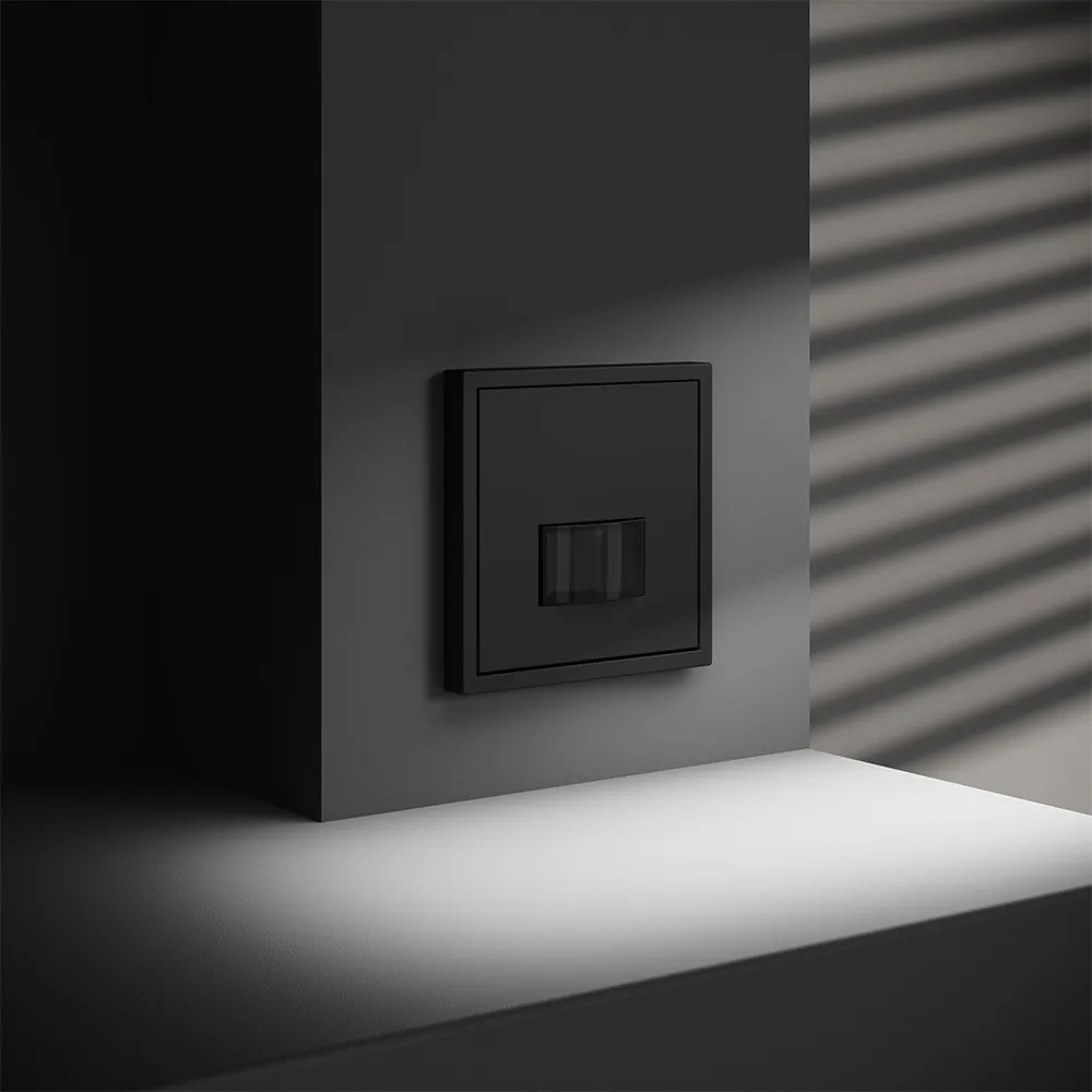 Корпус. Панель управления датчиком расположена под передней накладкой. Устройство монтируется в стандартный подрозетник и совместимо со всеми рамками серии S70 Voltum. Дизайн выполнен в единой фирменной стилистике. Основной материал корпуса — долговечный и негорючий поликарбонат.