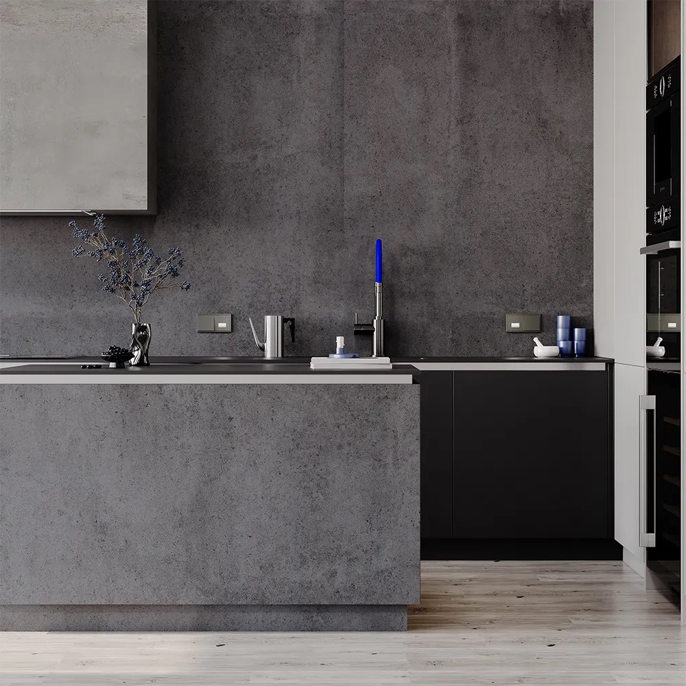 Сдержанный металлический серый с холодным подтоном. Подчёркивает технологичность пространства и гармонично сочетается со стальной фурнитурой, бытовой техникой и элементами хай-тек.